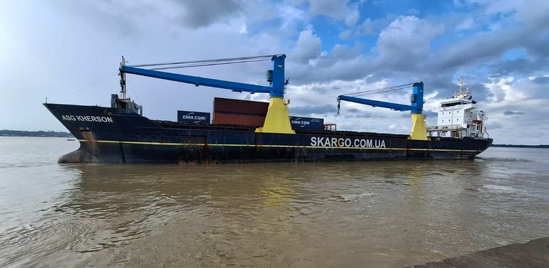 Au petit matin, le navire cargo ukrainien ASG KHERSON est arrivé en Guyane par l’Océan Atlantique à AWALA à marée haute et avait navigué sur le Maroni pendant 50 km jusqu’au Port de Saint Laurent du Maroni.