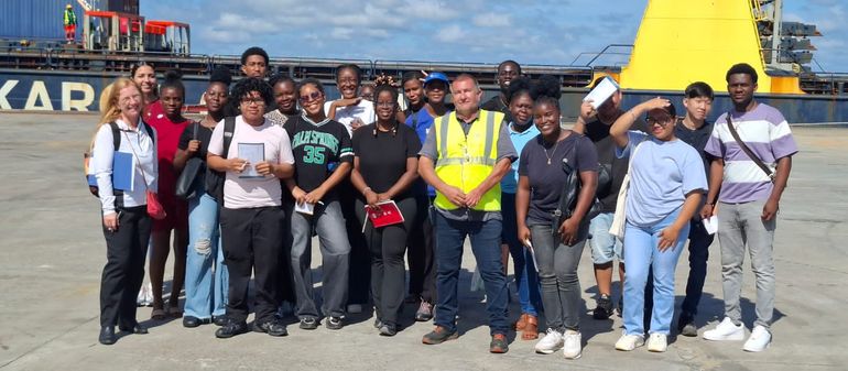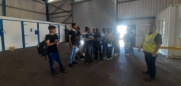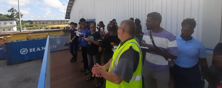 Monsieur Robert nous explique les activités du port de commerce et les opérations en cours. Il a par ailleurs été transitaire pendant 10 ans à Cayenne. Grâce à son expérience, il captive les visiteurs du jour. Les étudiants ont beaucoup de questions à lui poser.