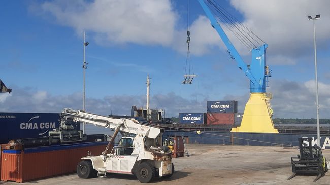 En novembre 2024, des travaux appelés « dragage » ont permis d’aspirer le sable au fond du Maroni pour augmenter le tirant d’eau à 4 mètres. Donc la partie immergée des navires ne doit pas dépasser cette hauteur. Les navires passent à marée haute pour ne pas racler le fond.