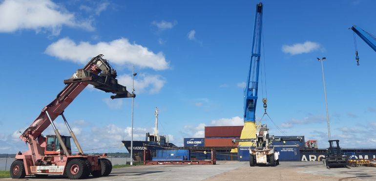 Le Port ne dispose pas de grue de déchargement donc les navires qui accostent ici doivent obligatoirement être dotés de leur propre grue.